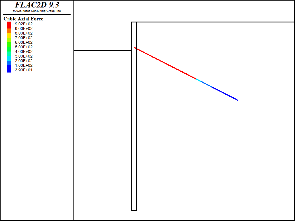 Anchors are modeled as cables, which are prestressed. The grouted part allows load transfer to the soil.