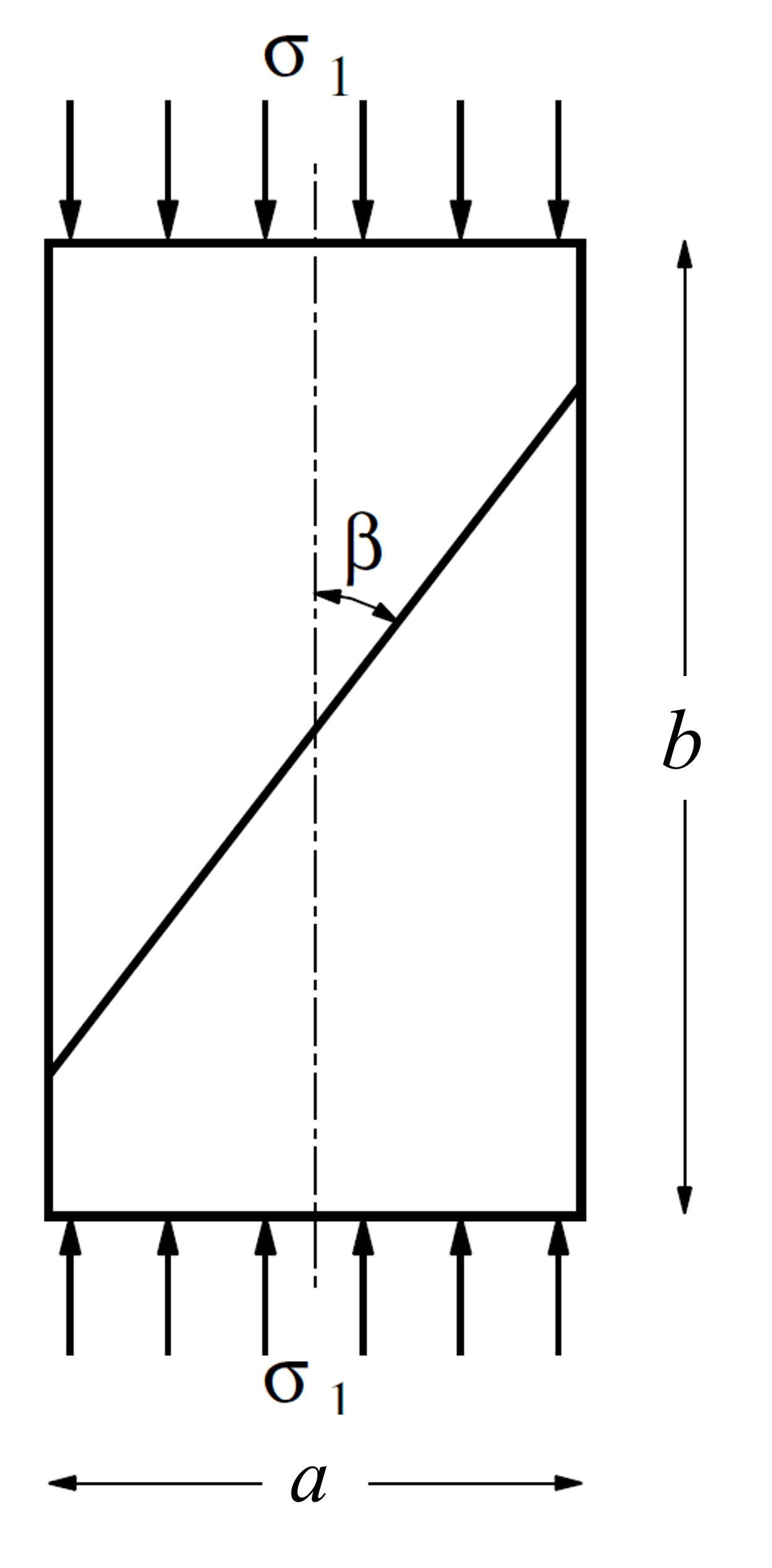 in which \(\beta\) is the weak-plane angle, as indicated in Figure 1. Before failure occurs, the state of stress is homogeneous in the sample. Failure will be initiated on the weak plane when, for \(\kappa >\) 0,