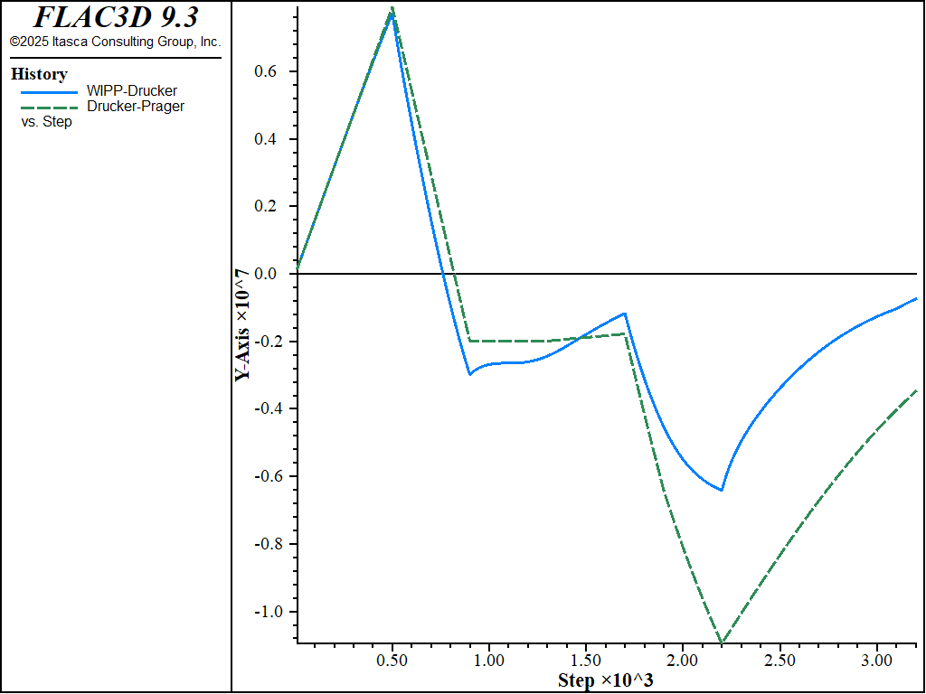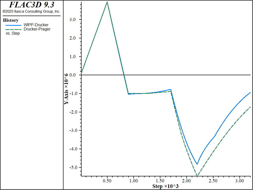 The viscoplastic WIPP-Drucker model is compared to the elastopalstic Drucker-Prager model. If creep is inhibited in the viscoplastic model, the same behavior is exhibited in both models.