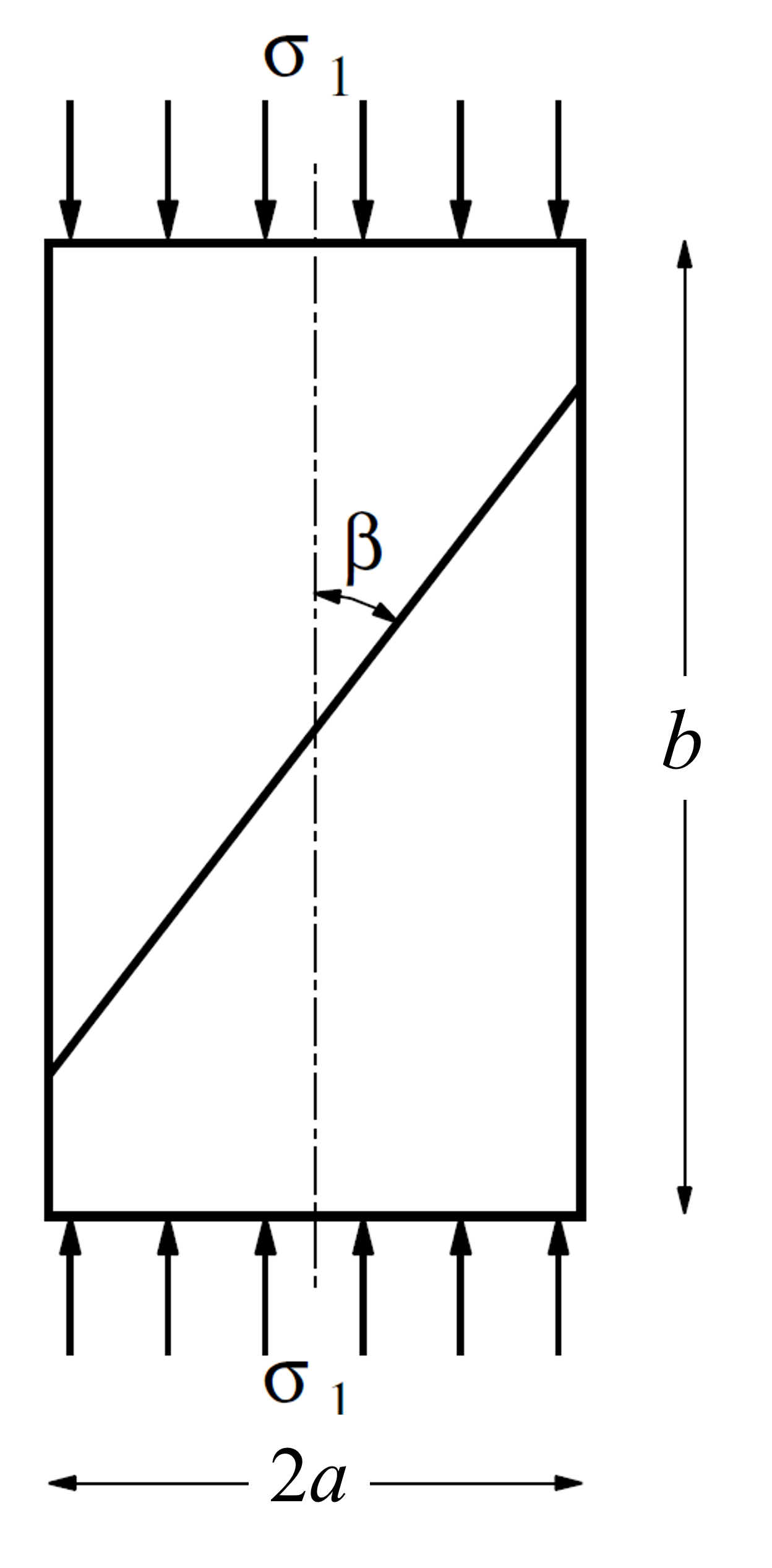 in which \(\beta\) is the weak-plane angle, as indicated in Figure 1. Before failure occurs, the state of stress is homogeneous in the sample. Failure will be initiated on the weak plane when, for \(\kappa >\) 0,
