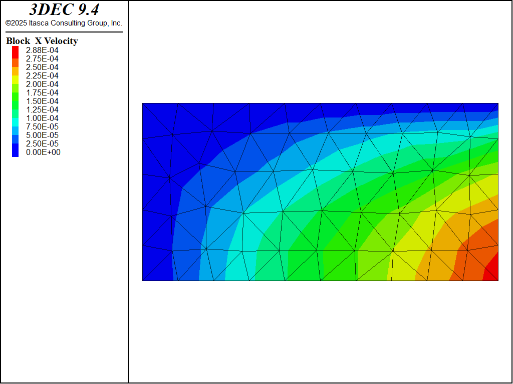 The contours of \(x\)-velocity from 3DEC are shown in Figure 1.