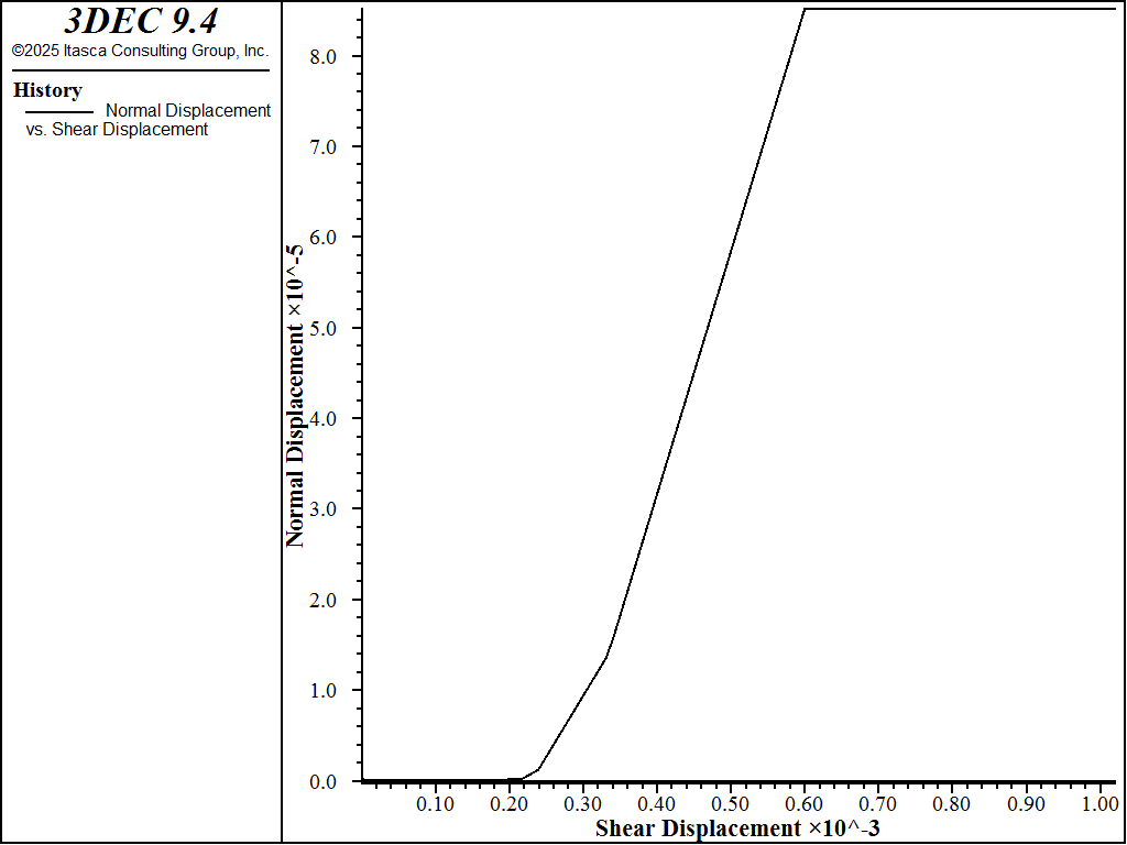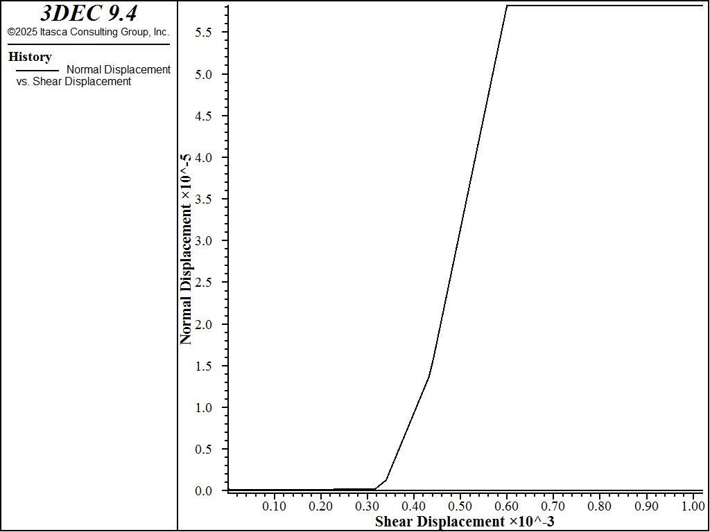 Figure 5: 3DEC joint dilation behavior on an unconfined joint for the Mohr-Coulomb joint model.