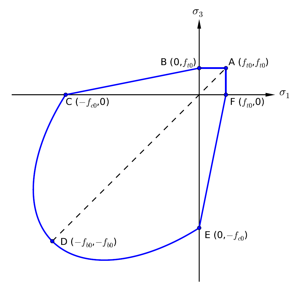 where \(f_{c0}\) is the uniaxial yield compressive strength and \(f_{b0}\) is the biaxial yield compressive strength. Since usually \(f_{b0} \ge f_{c0}\), \(\alpha\) is in the range of \(0 \le \alpha < 0.5\).