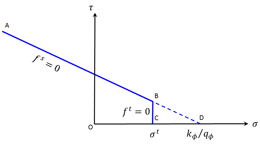 The tension cut-off is \({\sigma}^t = min({\sigma}^t, k_{\phi} / q_{\psi})\).