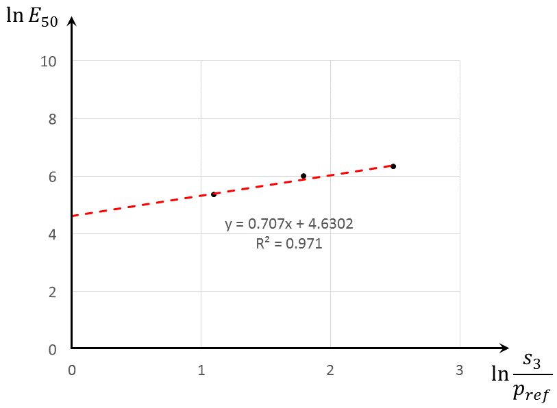 Here \(E^{ref}_{50}\) is a material parameter, which could be estimated from a set of triaxial compression tests with various cell stresses.