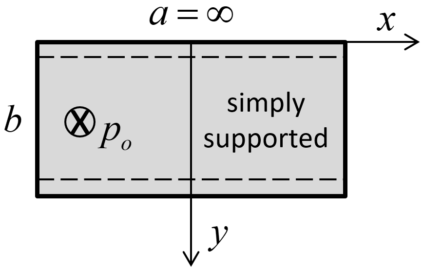 where \(p_o\) is applied pressure; \(b\) is strip width; \(D\) is flexural rigidity; \(E\) is Young’s modulus; \(\nu\) is Poisson’s ratio; and \(t\) is strip thickness.