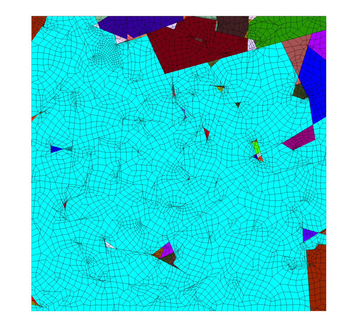 This automatically separates all of the faces with a group name assigned in slot “dfn”. A special keyword distinct-geometry is required because the fractures have a non-manifold topology (think of a T-junction). This is not required for separation when each joint is distinct (i.e., not intersecting).