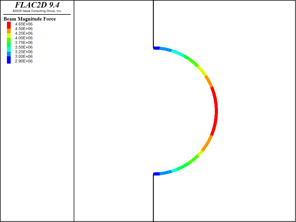 Figure 6: Shotcrete liner installed as beam elements attached to tunnel boundary.