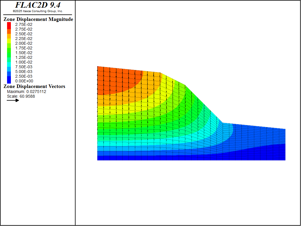 This project reproduces Example 16 from FLAC 8.1. The project file for this example is available to be viewed/run in FLAC2D.[1] The project’s main data files are shown at the end of this example.