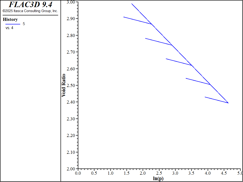 The sample is assumed normally isotropic consolidation with \(OCR\) = 1, so the initial mean effective pressure and the preconsolidation pressure are the same. Their values are specified using a simple FISH function: