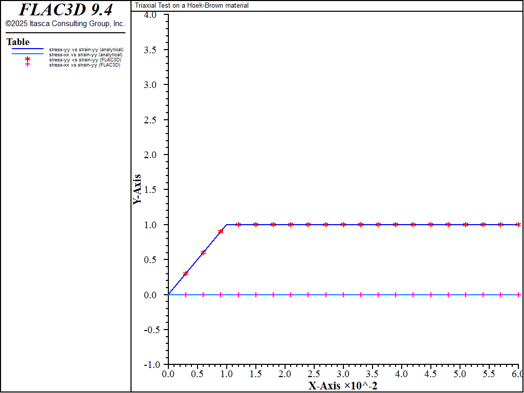 Triaxial compression tests are performed on models composed of Hoek-Brown-PAC material in FLAC3D to verify the stress and strain paths that develop.