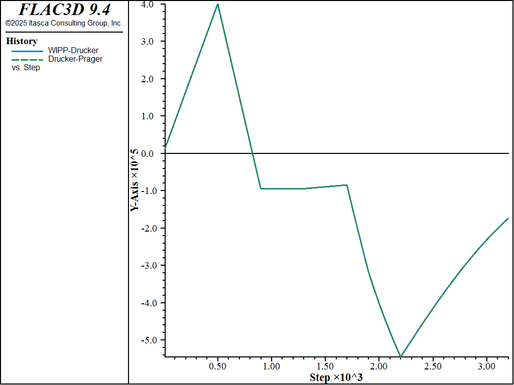 The viscoplastic WIPP-Drucker model is compared to the elastopalstic Drucker-Prager model. If creep is inhibited in the viscoplastic model, the same behavior is exhibited in both models.