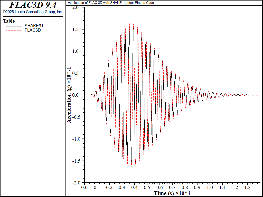 By assuming that shear modulus and damping are strain-independent, the same properties are used in FLAC3D and SHAKE-91.