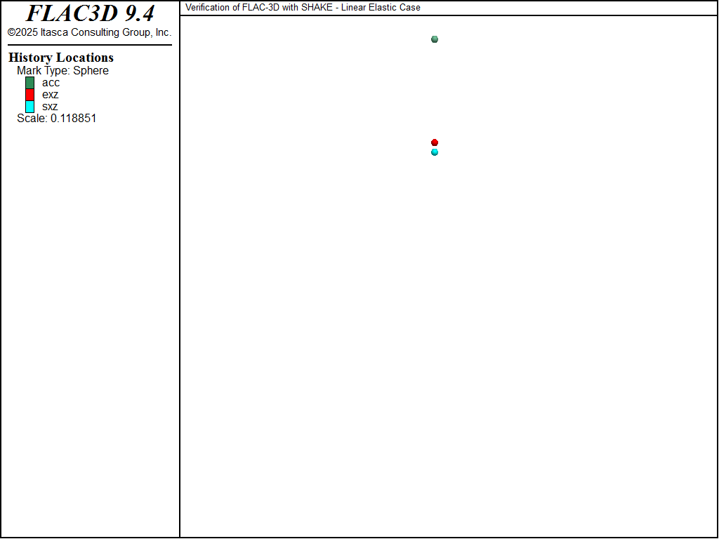 model title "Verification of FLAC-3D with SHAKE - Linear Elastic Case"