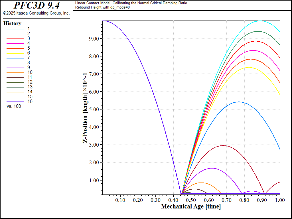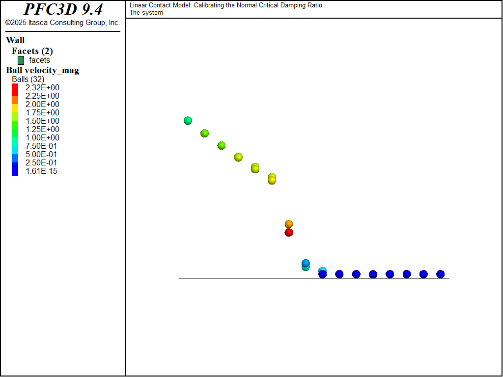 When viscous damping is used in a PFC model with a linear contact model, an appropriate damping constant should be specified for the simulation to reproduce a realistic response. One way to do this is to calibrate the damping by using the relation between the damping constant and the restitution coefficient. [Kawaguchi1992] derived the relation by solving the equations of motion for free vibration with viscous damping. This derivation is presented. Also, the result of drop tests using PFC3D is compared with the analytical solution.